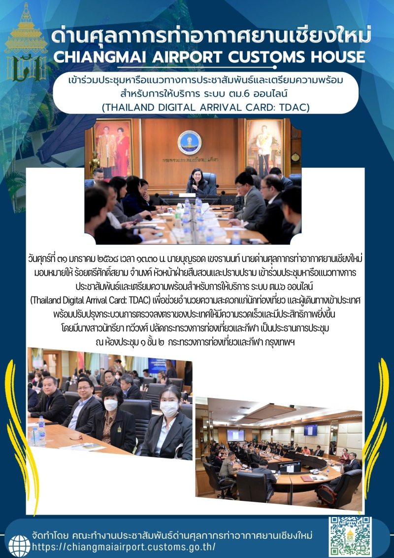 ***___ด่านศุลกากรท่าอากาศยานเชียงใหม่ ร่วมประชุมหารือแนวทางการประชาสัมพันธ์และเตรียมความพร้อมสำหรับการให้บริการ ระบบ ตม.๖ ออนไลน์ (Thailand Digital Arrival Card: TDAC)___***